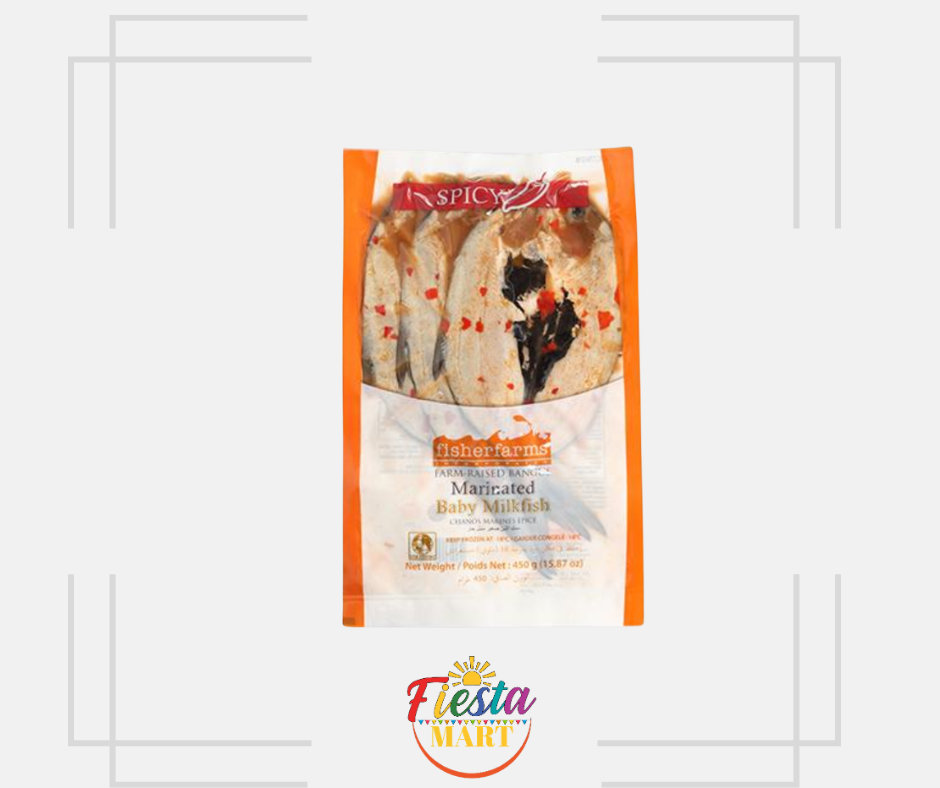 The spicy Milkfish (Bangus) fillet from Fisher Farms is a frozen specialty with an intense, sharp flavor. Milkfish, farmed in the Philippines, is marinated with chili, garlic, vinegar, and spices, gaining succulence and a distinct character. It contains 20 g of protein and is a source of healthy fats. Its frozen form and simple preparation make it an ideal base for authentic Filipino dishes, such as Sinigang, or simply grilled or fried.